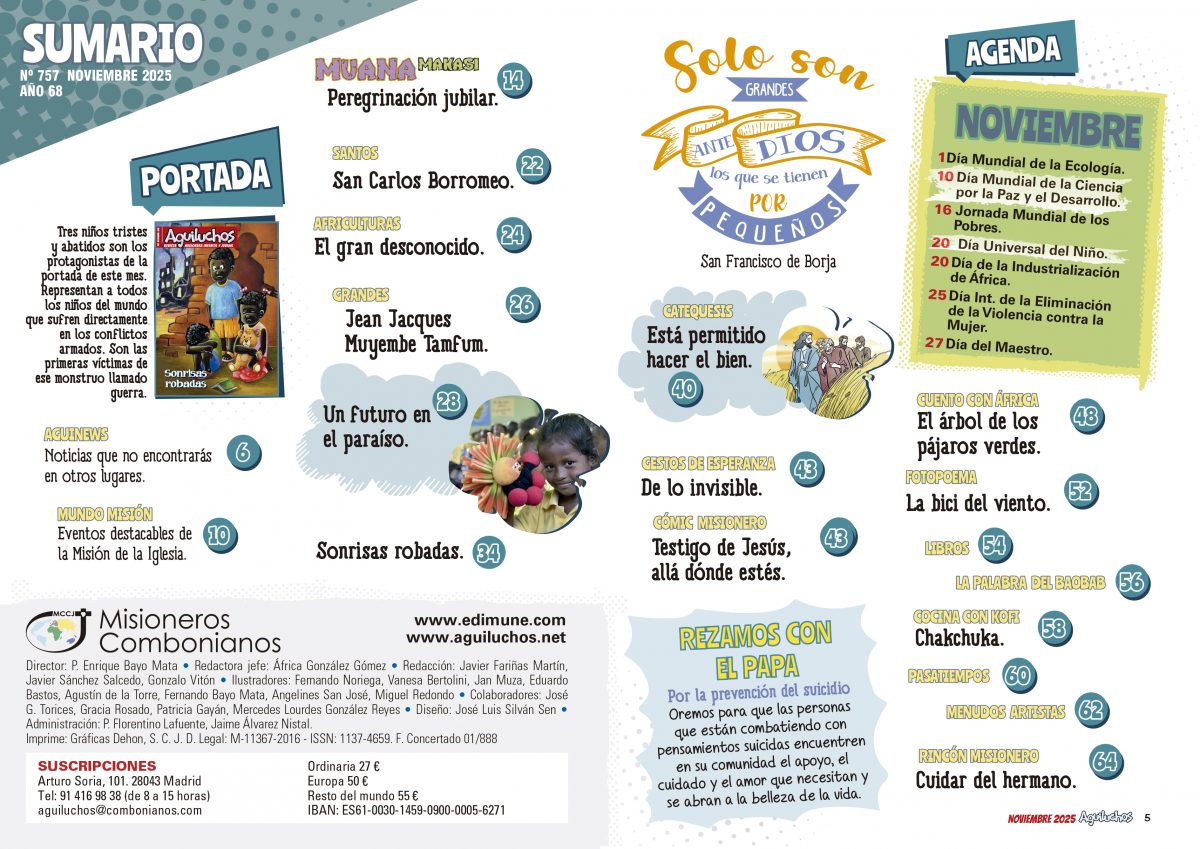 Suscríbase pulsando aquí, enviándonos un correo electrónico a edimune@combonianos.com o en el teléfono: 91 415 24 12